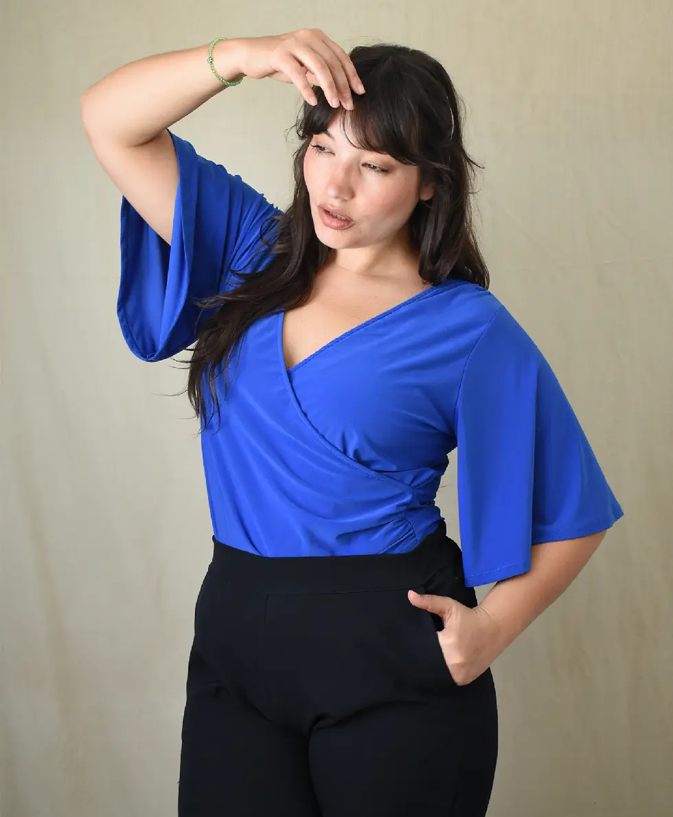 Blusa Seda Fria liso cruzada 3/4 manga campana