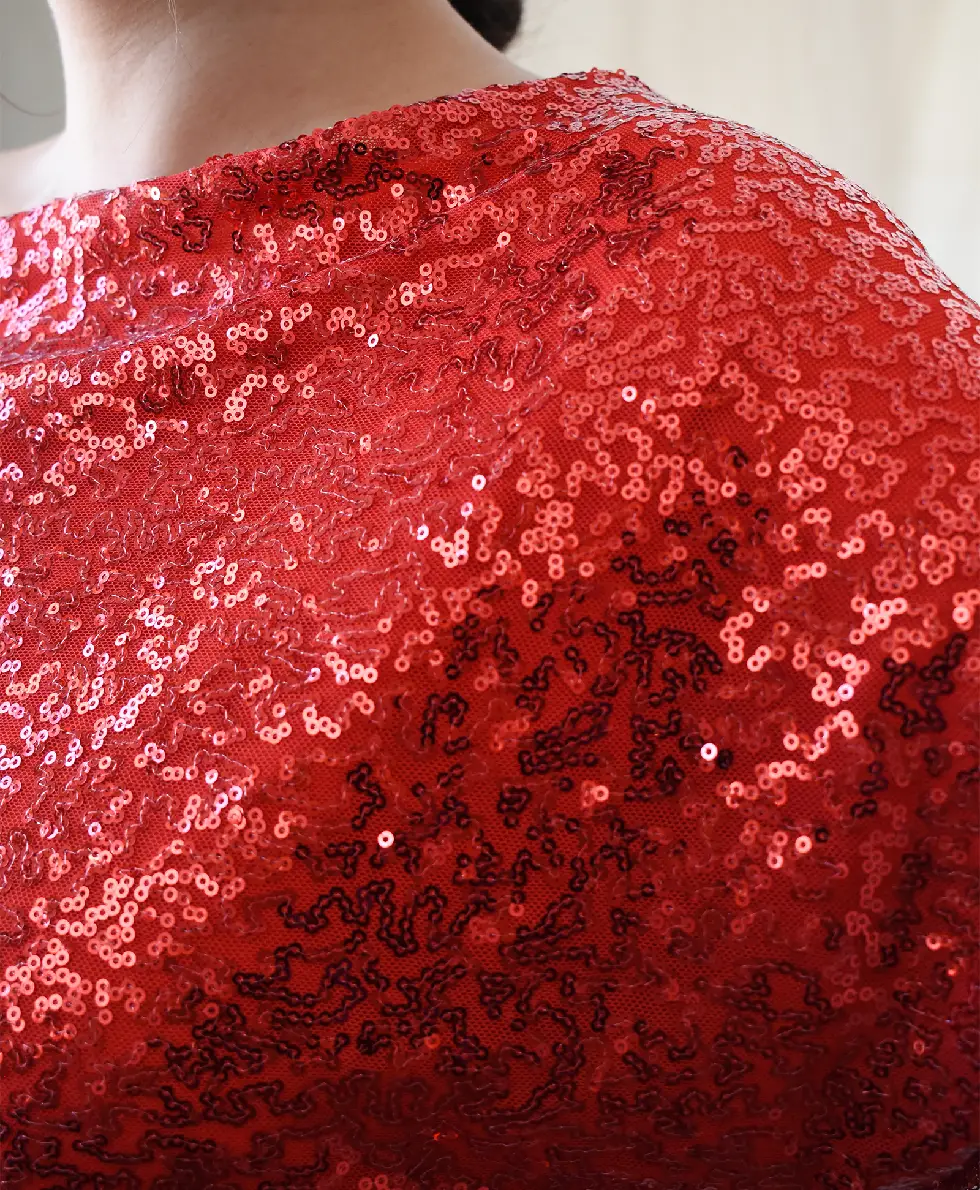 Tela: Lentejuela Cosida con forro de crepe al tono