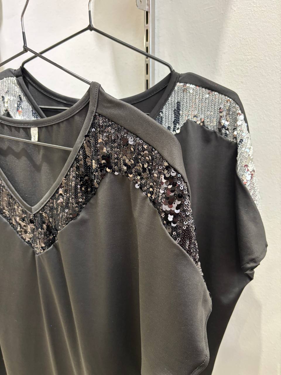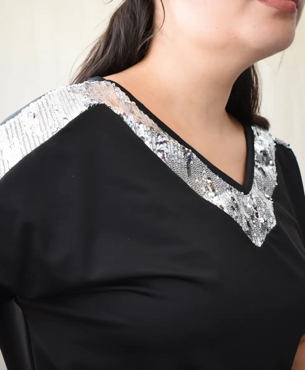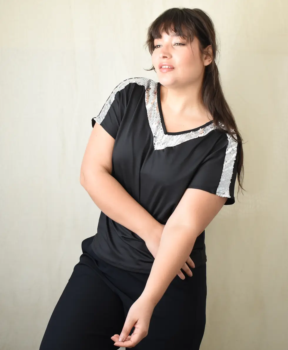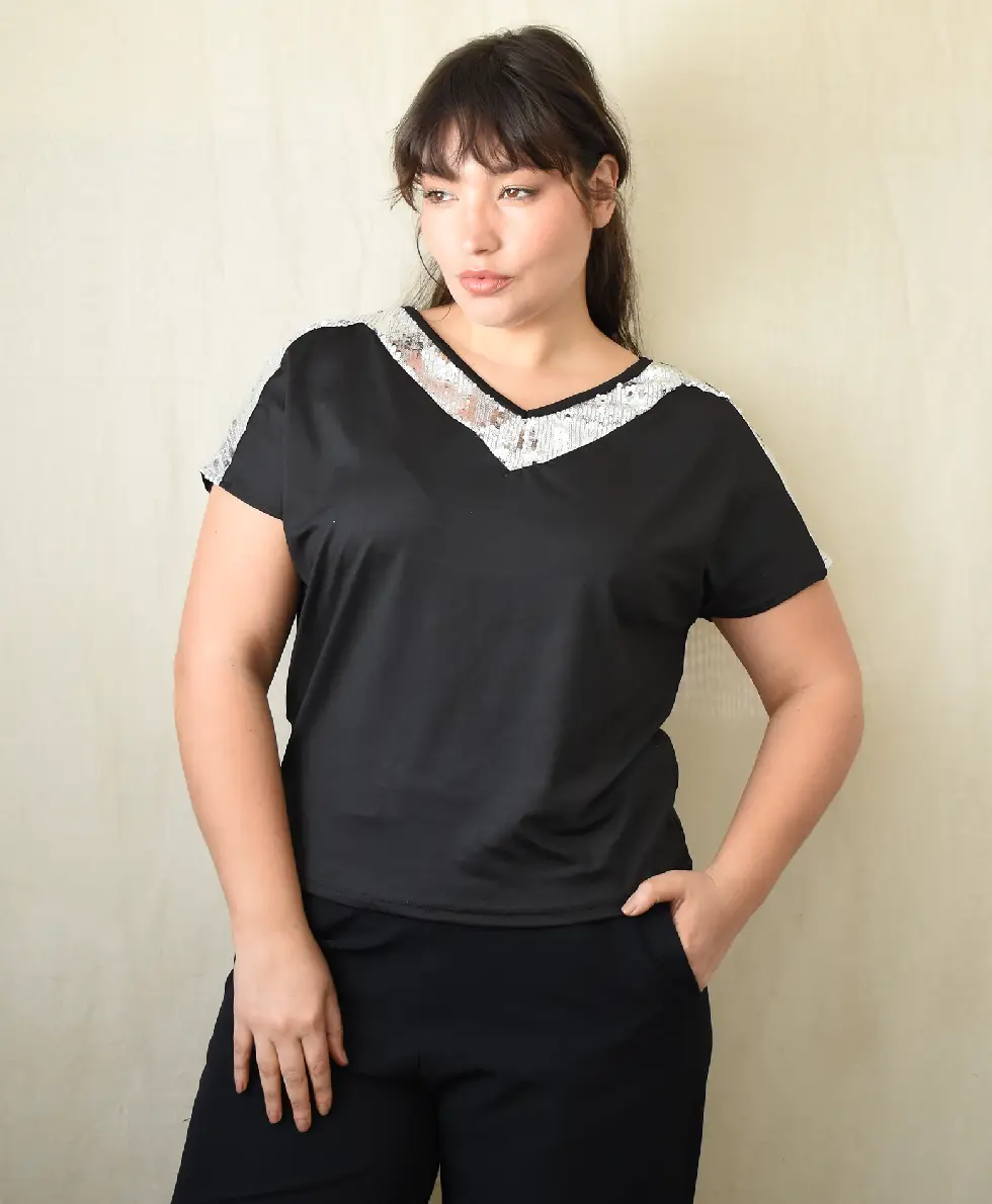 Blusa Microfibra combi cuello V Lentejuela