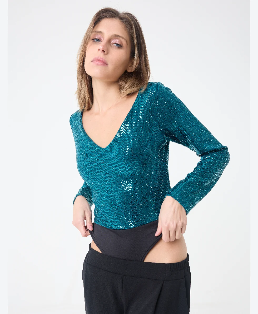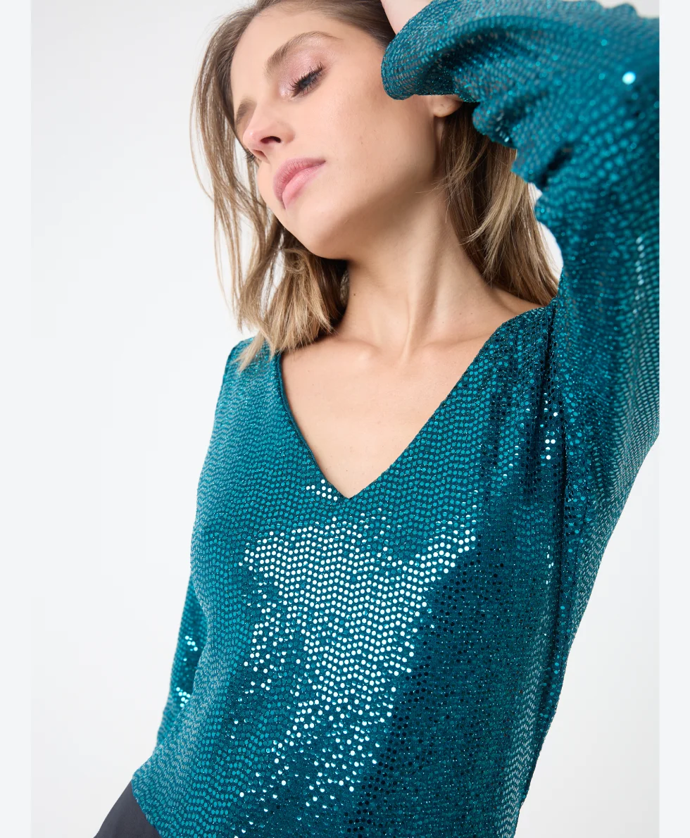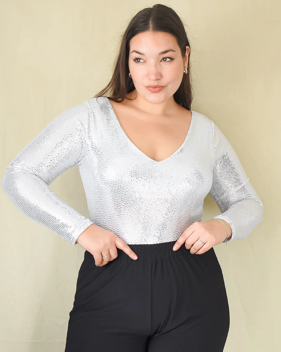 Tela: Transfer (lentejuela falsa) combinado con microfibra.