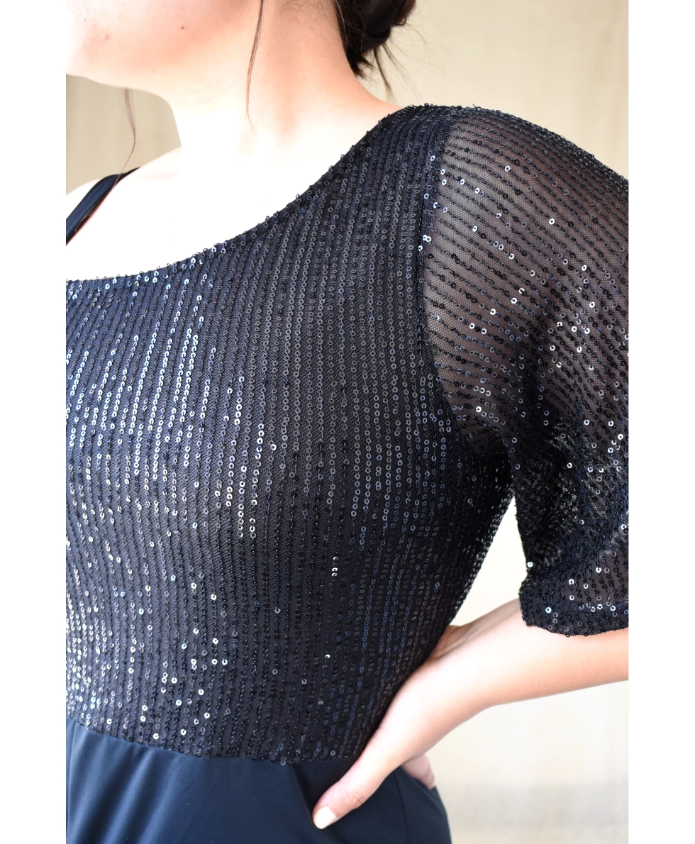 Tela: top de lentejuela cosida y pantalon de microfibra