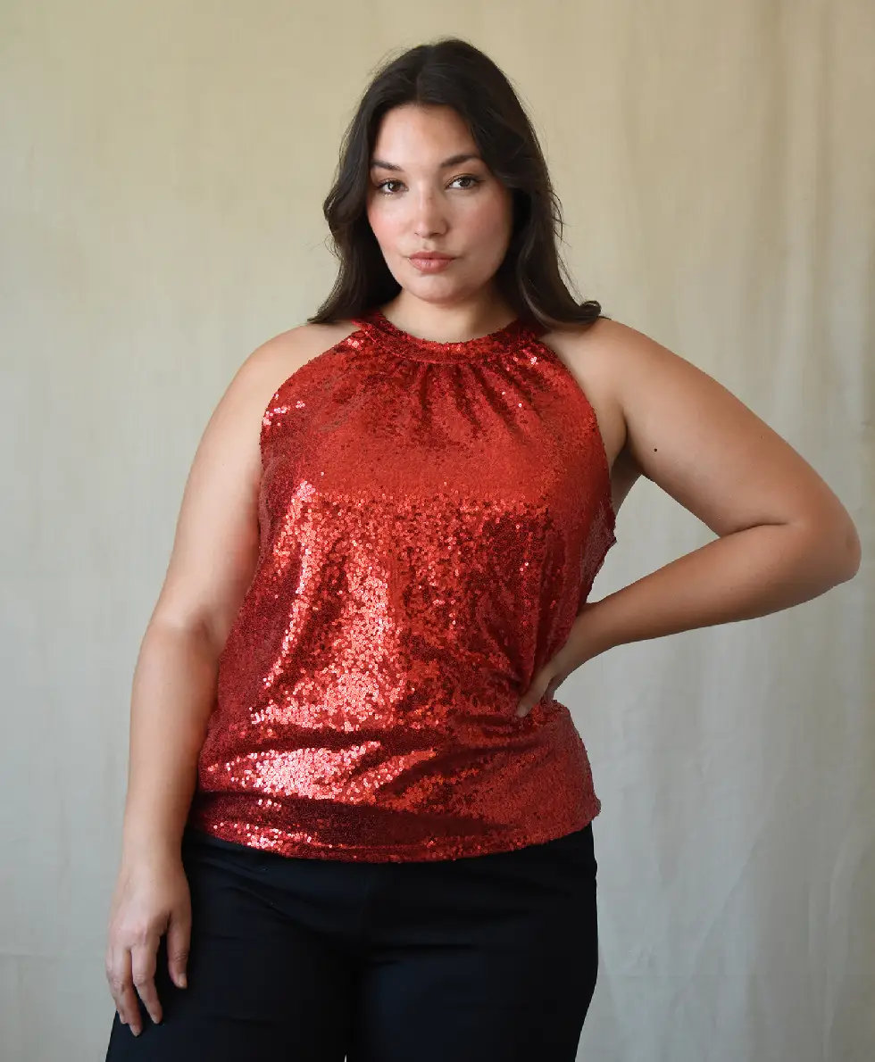 La modelo tiene un talle 5 en rojo.