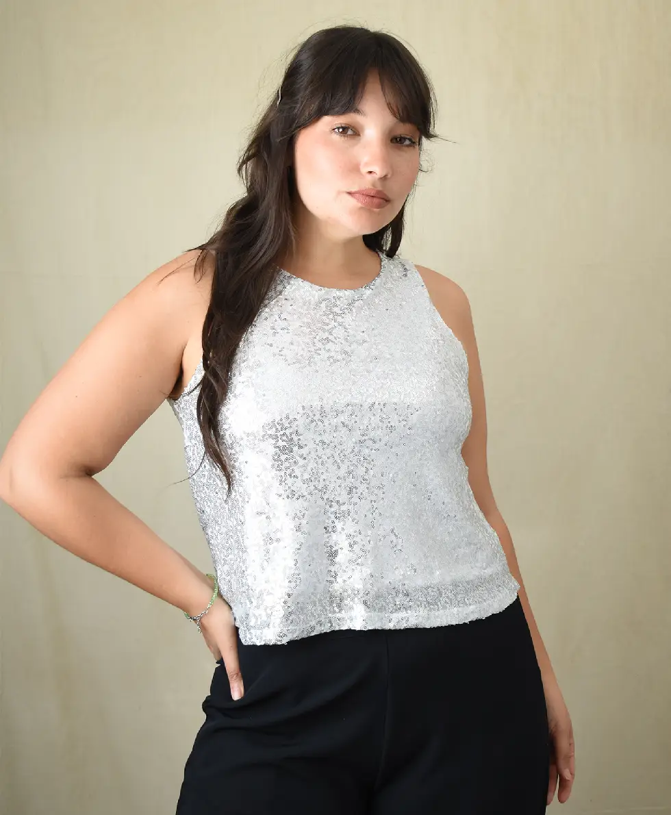 Musculosa Lentejuela Cosida corta
