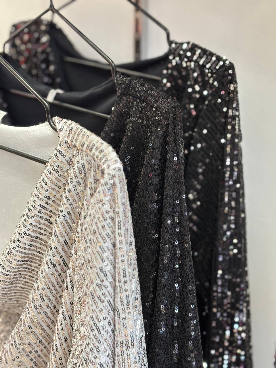 *el color Negro es fondo negro con algunas lentejuela plateadas.