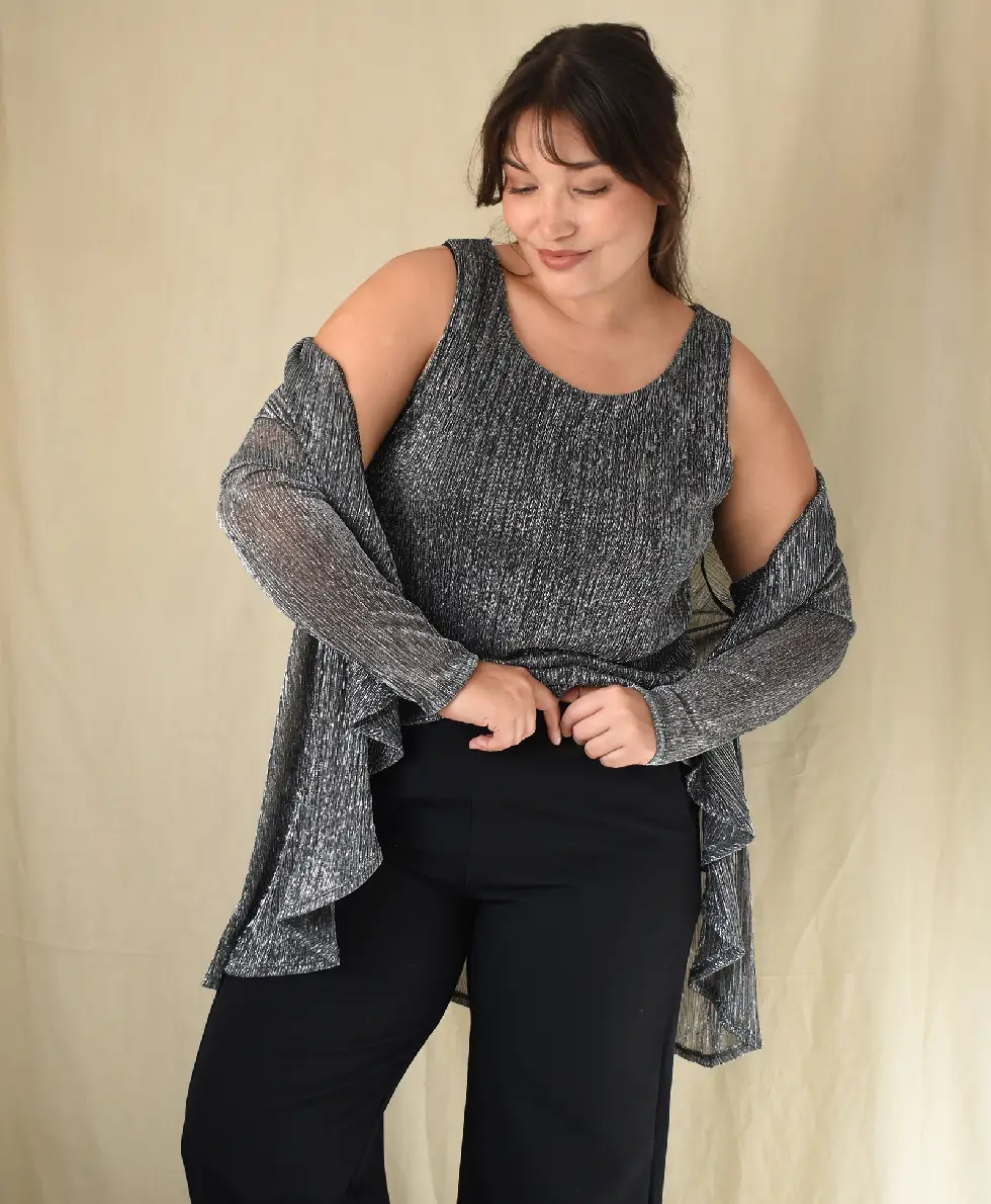 Twinset: musculosa bretel ancho con forro y saquito al tono. Las prendas pueden separarse.